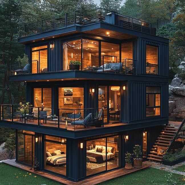 Repurposing shipping containers reduces waste and the demand for new construction materials, aligning with eco-conscious building practices. The use of recycled materials and energy-efficient systems, such as solar panels and rainwater harvesting, enhances the environmental benefits of container cabins